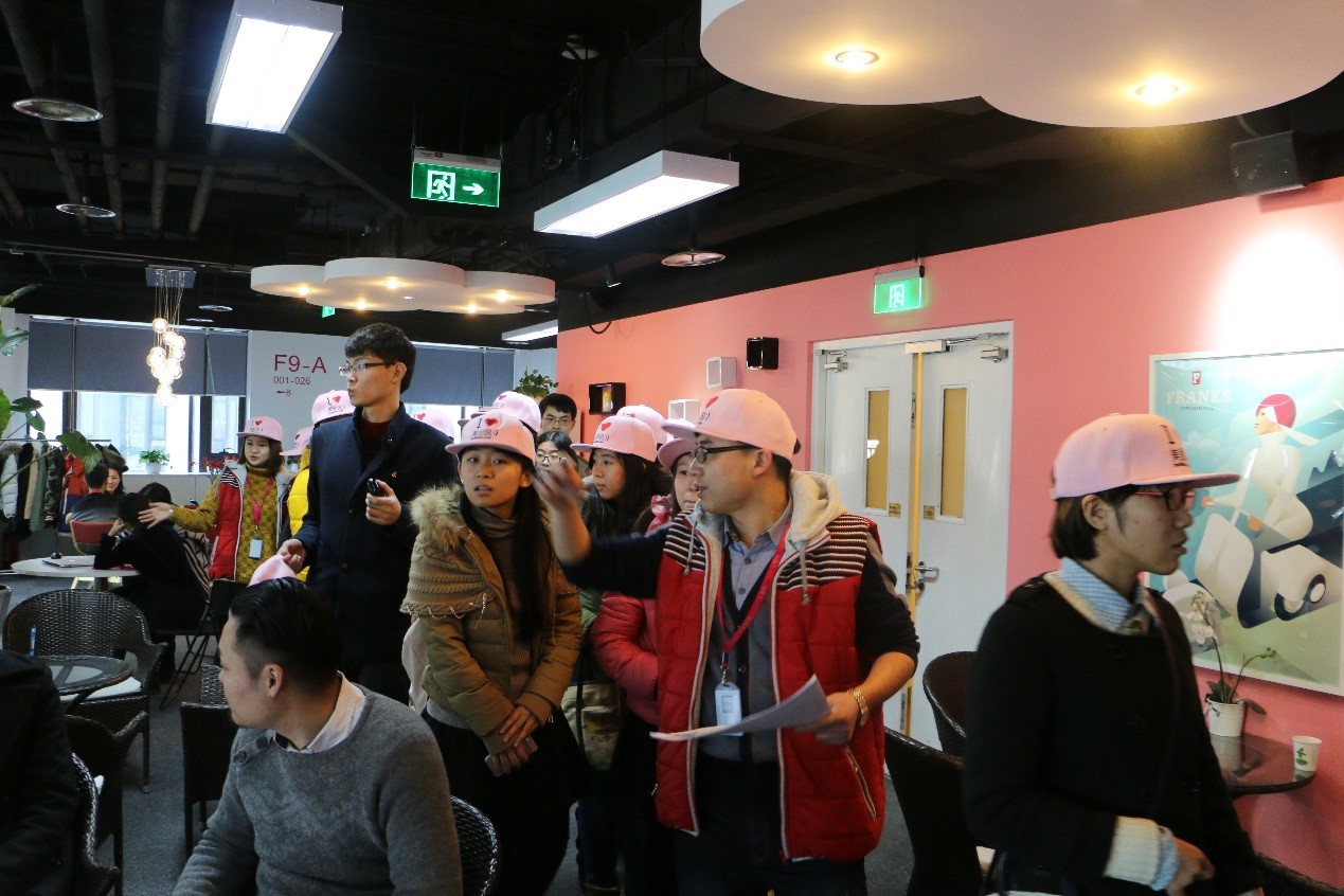 就业指导教师于群老师带队,学生职业发展协会组织了一支共26人的参观队伍出发前往中关村美丽说公司总部,走访了这家集聚时尚女和IT男的创业型名企。参观活动于下午3:00正式开始,美丽说的校园招聘主管尹瑞升老师及其助理热情地接待了到访的计通学子。
