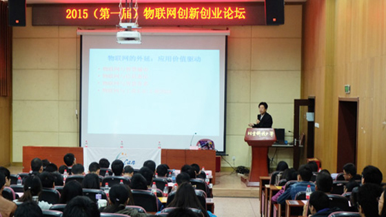 论坛由iCAN国际大赛的发起人及大赛主席、北京大学张海霞教授对中国大学生ICAN物联网创新创业大赛发展、历史以及赛制、规则进行了介绍。张海霞教授谈到,该项赛事是一项在世界范围内都有着广泛影响并对中国物联网发展起到推动和促进的比赛。比赛主要目的就在于弥补大学生知识与实际应用的空白,为大学生提供了一个创新就业的平台。她的发言让同学们对ICAN物联网大赛的概念与精神有了充分的认识。
