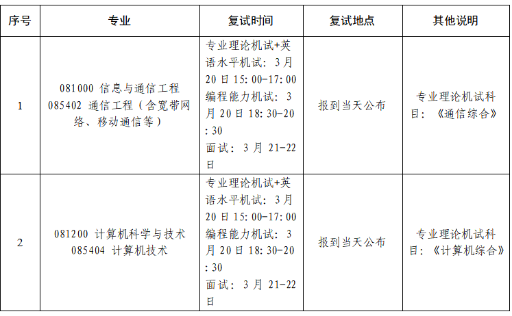 3. 各专业一志愿考生复试时间和地点